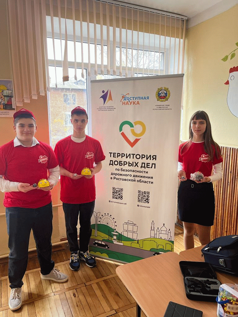 Для волонтеров-школьников и волонтеров-студентов на базе Центра школьных социальных инициатив «Источник добра» МБОУ СОШ № 17 Александра Щербакова, совместно с наставниками, провела обучающие мероприятие по теме «Робототехника и безопасность дорожного движения». Работа с волонтерами осуществляется в рамках реализации социального проекта «Развитие школьных волонтерских социальных инициатив по безопасности дорожного движения в Ростовской области», поддержанного Федеральным агентством по делам молодёжи.