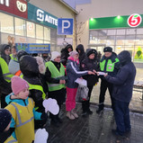 Сотрудники Госавтоинспекции провели беседы со взрослыми и детьми , а ЮИДовцы и ЮПИДовцы помогали раздавать тематические памятки - листовки и световозвращающие элементы.