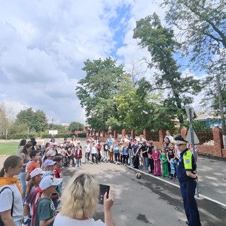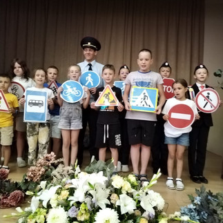 В последний день смены в гости к ребятам пришел Дядя Степа со своими помощниками, отрядом ЮИД "Сирена". Все ребята второго и третьего отрядов ещё раз повторили вместе с ЮИДовцами правила дорожного движения, используя кроссворды по ПДД. Ребята четвертого и пятого отрядов приняли участие в веселом квесте по поиску нужных дорожных знаков. А вместе с шестым отрядом ЮИДовцы исполнили веселые частушки на знание ПДД. Но главными гостями на закрытии смены стали сотрудники ГИБДД ОМВД России по городу Батайску -капитан полиции Рыльский Сергей Андреевич и капитан полиции Петрович Юрий Александрович. В школьном авторогородке они рассказали об опасностях, которые могут возникнуть у дороги. Накануне своего профессионального праздника сотрудники ГИБДД несут службу на дорогах страны, готовы прийти на помощь всем, кто в ней нуждается. Ребята пришкольного лагеря и юные инспекторы движения поздравили сотрудников ГИБДД с наступающим праздником в стихах: «Ради мира и добра»